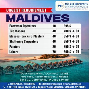 We are providing urgent job hiring in Maldives. We are currently offering these vacancies.