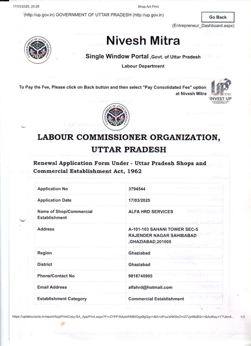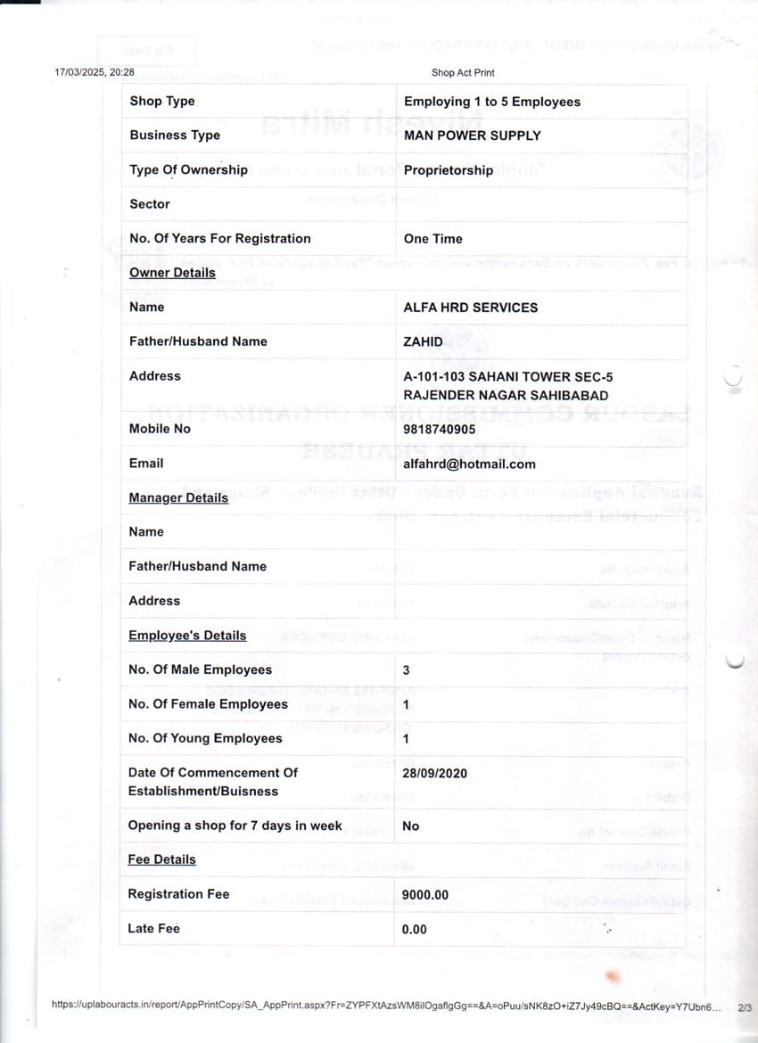 M/s ALFA HRD SERVICES has been providing its services since 2005 more than last 16 years. M/s ALFA HRD SERVICES is registered with all the Government authorities and departments with all Valid & necessary registration certificates