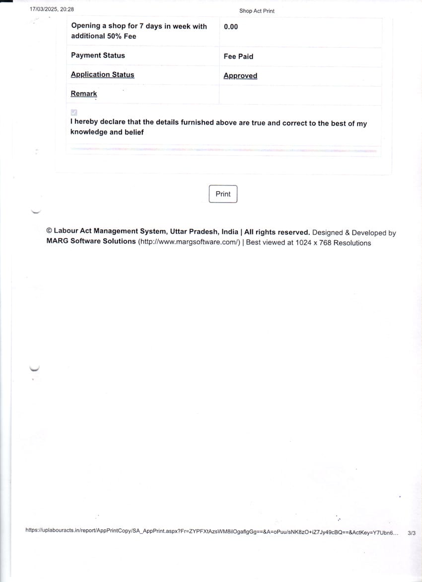 State shop and establishment Act, Govt. of Uttar Pradesh.